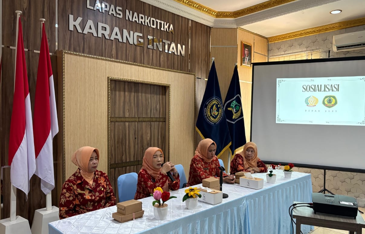 Dharma Wanita Persatuan (DWP) Lembaga Pemasyarakatan (Lapas) Narkotika Kelas IIA Karang Intan menggelar pertemuan rutin penuh kehangatan di Aula Lapas Narkotika Karang Intan, Sabtu (11/10). Kegiatan diikuti 44 anggota dari total 99 anggota DWP yang hadir dengan antusias, mempererat silaturahmi dan kebersamaan antaranggota.