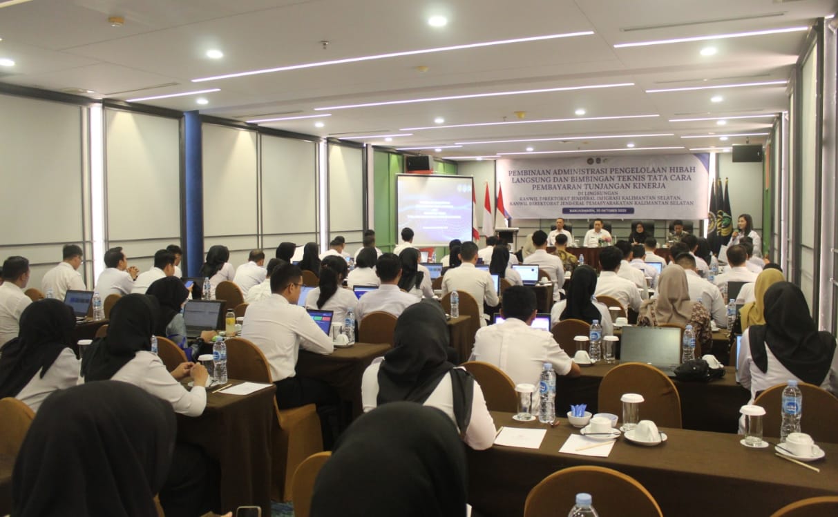 Dua petugas Lembaga Pemasyarakatan (Lapas) Narkotika Kelas IIA Karang Intan, Miranda selaku operator SEHATI dan Fathurrahman selaku operator Tunjangan Kinerja, mengikuti kegiatan Pembinaan Administrasi Pengelolaan Hibah Langsung dan Bimbingan Teknis (Bimtek) Tata Cara Pembayaran Tunjangan Kinerja, yang diselenggarakan oleh Kantor Wilayah (Kanwil) Direktorat Jenderal Pemasyarakatan (Ditjenpas) Kalimantan Selatan bekerja sama dengan Biro Perencanaan dan Keuangan Sekretariat Jenderal Kementerian Imigrasi dan Pemasyarakatan. Kegiatan berlangsung di Ballroom Raphia IV Hotel Rattan Inn Banjarmasin, Kamis (30/10).