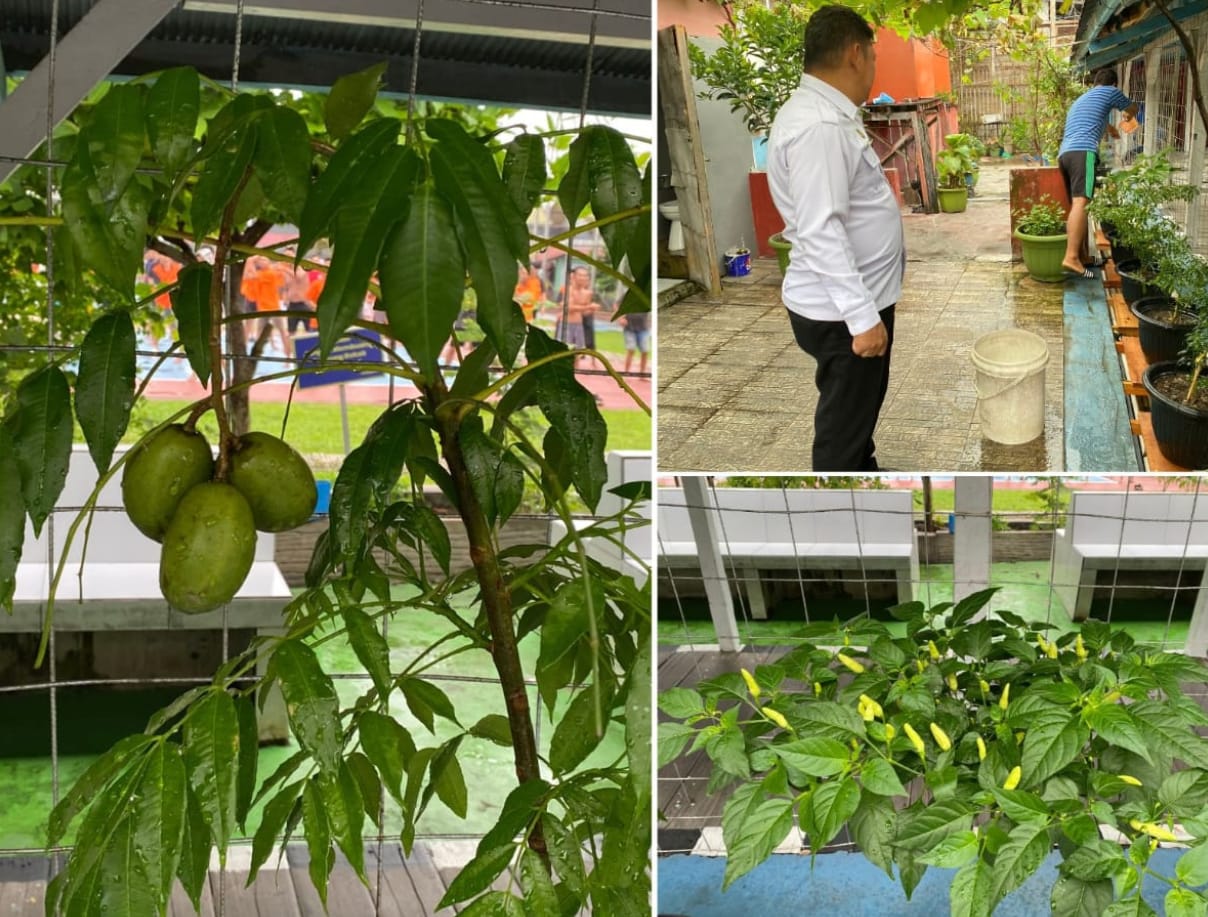 Kepala Lapas Kelas IIA Banjarmasin, Akhmad Herriansyah, melakukan peninjauan ke kebun mini Blok F yang ditanami pohon kedondong dan tanaman cabai oleh Warga Binaan Pemasyarakatan (WBP), Selasa (16/09).