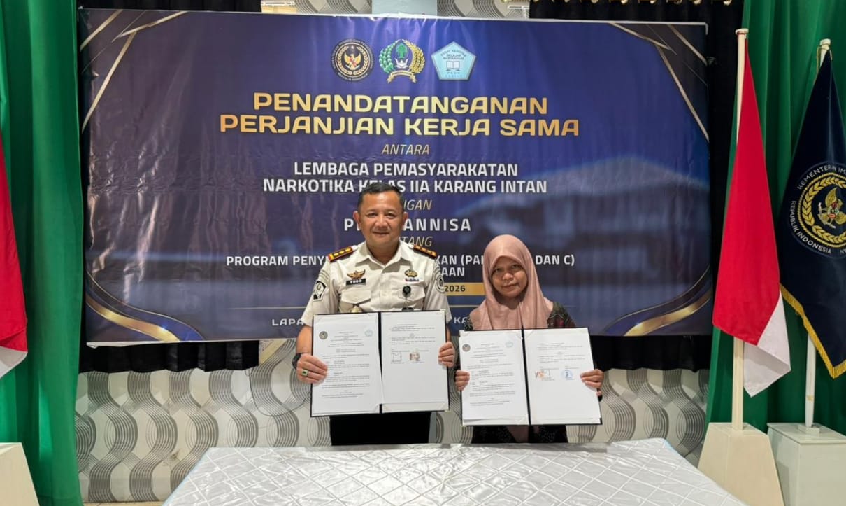 Komitmen menghadirkan pembinaan yang berdampak nyata kembali ditunjukkan Lembaga Pemasyarakatan (Lapas) Narkotika Kelas IIA Karang Intan melalui penandatanganan Perjanjian Kerja Sama dengan Pusat Kegiatan Belajar Masyarakat (PKBM) Annisa Kecamatan Karang Intan, Kabupaten Banjar. Kerja sama ini difokuskan pada penyelenggaraan Program Penyetaraan Pendidikan Paket A, B, dan C bagi warga binaan, sebagai langkah strategis membuka akses pendidikan yang inklusif di dalam lapas, Rabu 08 April 2026.