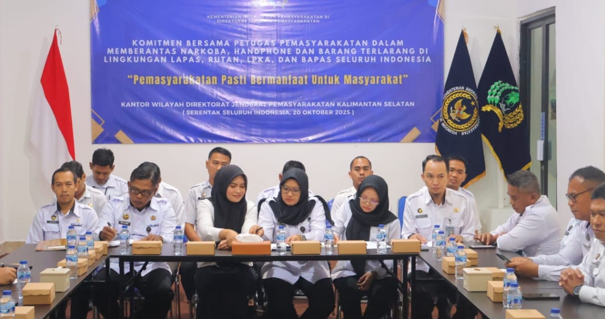 Kepala Lembaga Pemasyarakatan (Lapas) Narkotika Kelas IIA Karang Intan, Yugo Indra Wicaksi, menghadiri rapat koordinasi yang digelar oleh Kantor Wilayah Direktorat Jenderal Pemasyarakatan (Ditjenpas) Kalimantan Selatan, Rabu (22/10). Kegiatan yang dilaksanakan di Aula Kanwil Ditjenpas Kalsel tersebut bertujuan memperkuat efektivitas pelaksanaan program kerja dan sinergi antar-unit di bawah naungan Kementerian Imigrasi dan Pemasyarakatan.