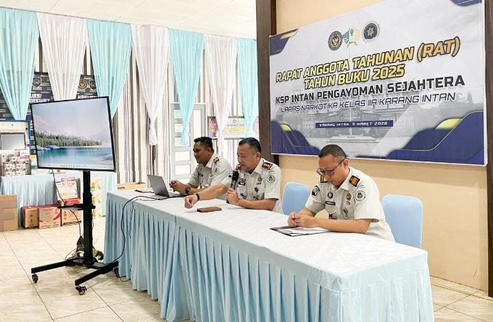 Semangat transparansi pengelolaan koperasi terasa kuat dalam kegiatan Rapat Anggota Tahunan (RAT) Tahun Buku 2025 Koperasi Simpan Pinjam (KSP) Intan Pengayoman Sejahtera Lembaga Pemasyarakatan (Lapas) Narkotika Kelas IIA Karang Intan, yang dilaksanakan pada Kamis (05/03/2026). Kegiatan ini menjadi momentum penting untuk mengevaluasi kinerja koperasi selama satu tahun terakhir sekaligus mempererat kebersamaan antar anggota.