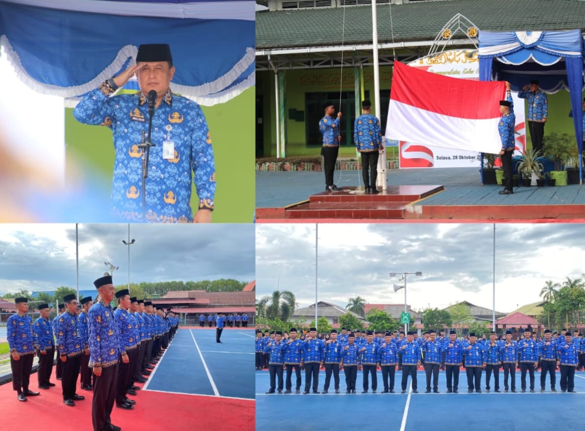 Dalam rangka memperingati Hari Sumpah Pemuda ke-97, Lapas Kelas IIA Banjarmasin menggelar upacara bendera yang berlangsung khidmat di Lapangan Dalam Lapas, Selasa (28/10).